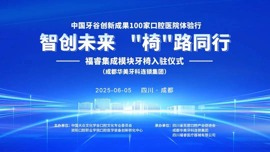 6月5日,以智创未来 •“椅”路同行为主题的“中国牙谷创新成果100家口腔医院体验行暨福睿集成模块牙椅入驻成都华美牙科连锁集团仪式”在天府新区华阳华美牙科龙灯山旗舰店启动。并授予成都华美牙科连锁集团集成模块牙椅应用示范基地。