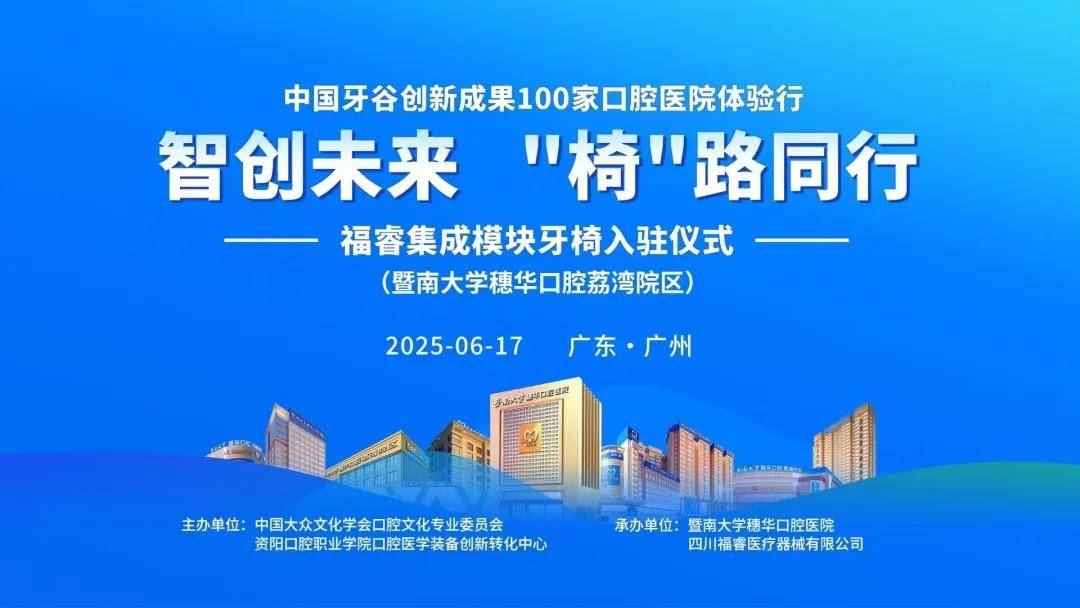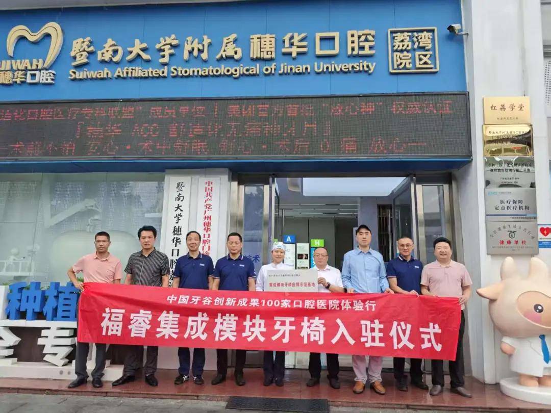 6月17日,以智创未来 •“椅”路同行为主题的中国牙谷创新成果100家口腔医院体验行暨福睿集成模块牙椅入驻暨南大学穗华口腔医院仪式在荔湾院区举行,并授予该院区集成模块牙椅应用示范基地。这标志着中国牙谷创新成果获华南知名大型连锁品牌口腔临床认可,开启落地广东规模化应用的大门!