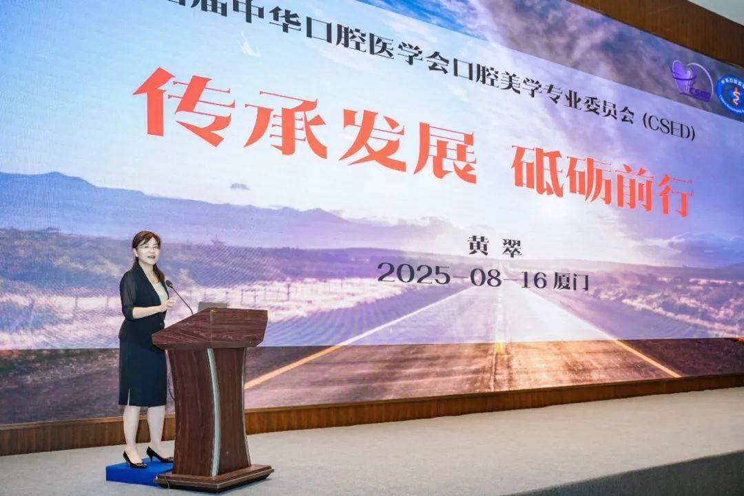 2025年8月16日,中华口腔医学会口腔美学专委会在厦门召开换届大会。第四届专委会由178名委员组成,选举产生常委60名,武汉大学口腔医学院黄翠教授当选主任委员,候任主委为四川大学华西口腔医院韩向龙教授,副主委为:叶晓昂、冯云枝、刘云松、刘伟才、汤春波、赵克、柳忠豪、潘晓岗。陈江教授任前任主委。据中华口腔医学会官网