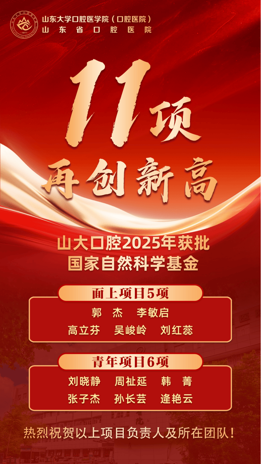 | 山东大学口腔医学院2025年获批国家自然科学基金11项