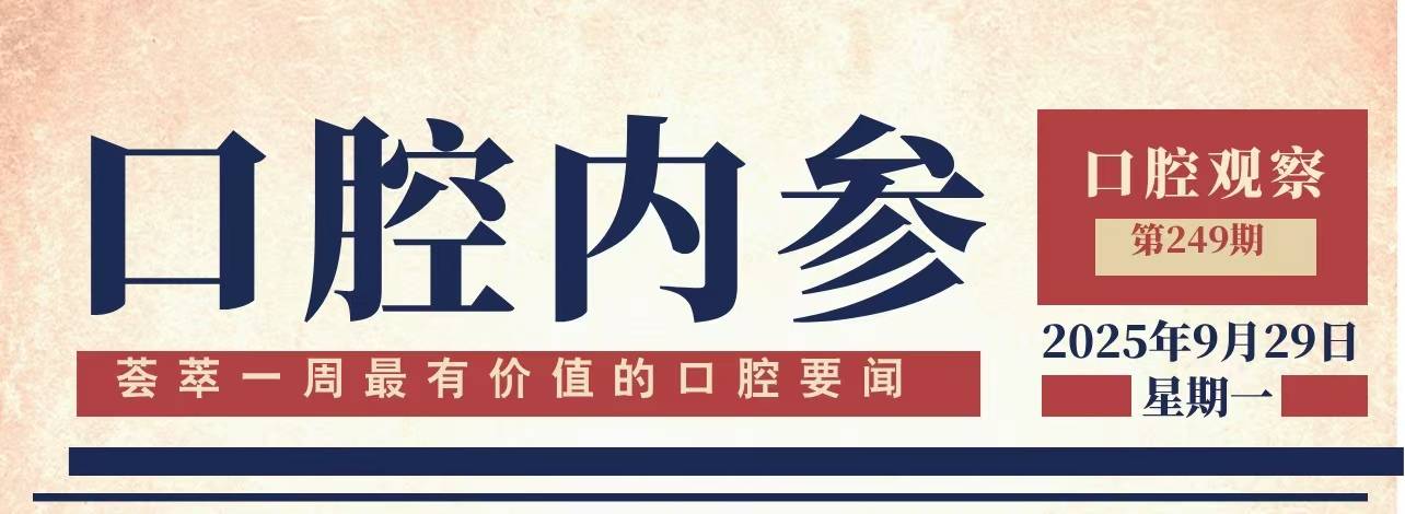 声明:《口腔内参》系口腔观察新媒体在行业首创的口腔行业资讯品牌栏目。荟萃一周最有价值的口腔要闻,每周一精彩呈现,为口腔行业从业者提供决策参考。1、本文内容整理自媒体及网络,文中观点和数据不代表《口腔观察》观点,引用内容及图片 版权归原所有者。2、凡转载《口腔观察》及《口腔内参》内容请标明转载自《口腔观察》出处。