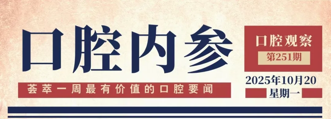 声明:《口腔内参》系口腔观察新媒体在行业首创的口腔行业资讯品牌栏目。荟萃一周最有价值的口腔要闻,每周一精彩呈现,为口腔行业从业者提供决策参考。1、本文内容整理自媒体及网络,文中观点和数据不代表《口腔观察》观点,引用内容及图片 版权归原所有者。2、凡转载《口腔观察》及《口腔内参》内容请标明转载自《口腔观察》出处。