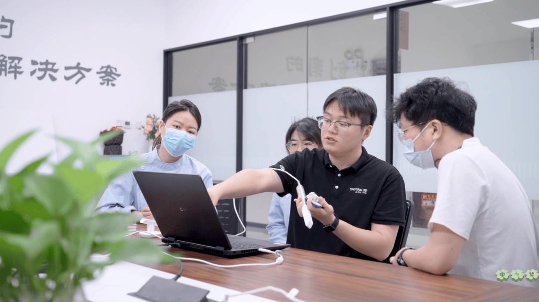 这套系统的核心优势,在复杂病例中体现得尤为明显。精瓷的4D𬌗重建技术组组长张静静分享:“当合作医生承接无牙颌、多牙缺失等复杂种植病例时,我们会携带Aoralscan Elite前往诊所协同取数据。今天就有一例无牙颌种植病例,我们通过设备配套的编码扫描杆,术后能直接获取种植体位置与角度。数据传回工厂后,设计团队可直接调取信息完成临时桥架设计,最终加工出的临时修复体,医生反馈就位效果好,患者也对修复精度和效率十分认可。”