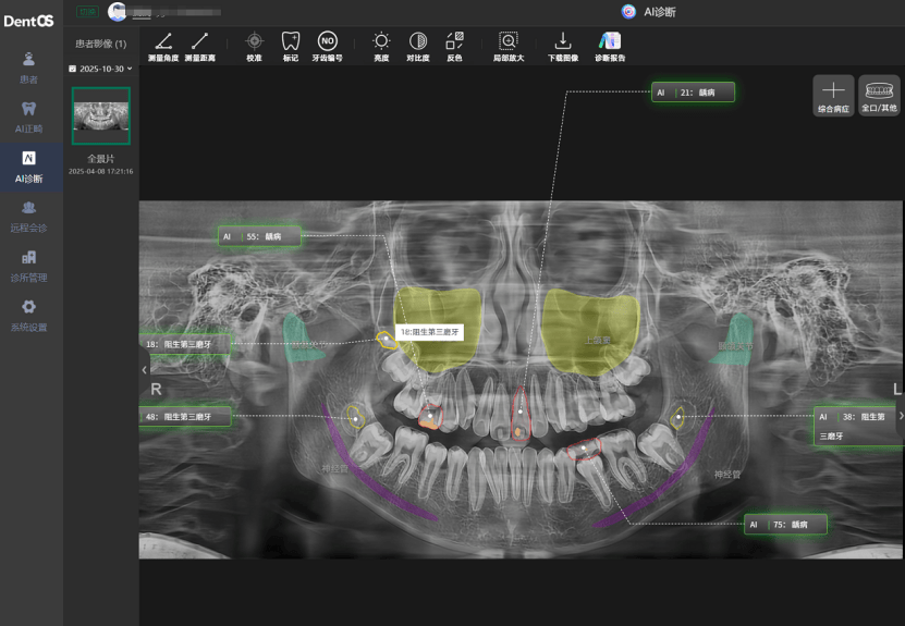 该平台性能达行业领先水平:全景片质控准确率超过95%,大幅降低重复拍片率;同时整合华西口腔智联大模型,形成“质控-诊断-报告”完整闭环。通过 “人机协同共智”新模式,完全契合国家卫健委对 AI 辅助诊断的规范化要求。