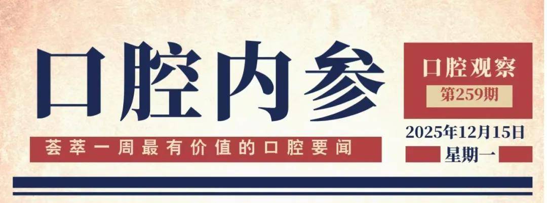 声明:《口腔内参》系口腔观察新媒体在行业首创的口腔行业资讯品牌栏目。荟萃一周最有价值的口腔要闻,每周一精彩呈现,为口腔行业从业者提供决策参考。1、本文内容整理自媒体及网络,文中观点和数据不代表《口腔观察》观点,引用内容及图片 版权归原所有者。2、凡转载《口腔观察》及《口腔内参》内容请标明转载自《口腔观察》出处。
