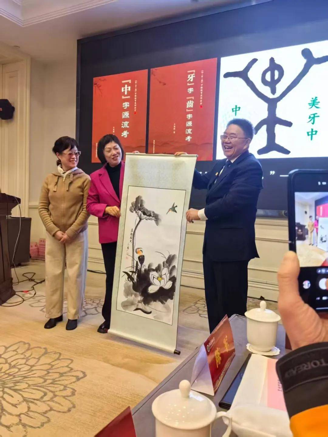 会议宣读了南方牙科联盟主席、广东省民营牙科协会创会会长欧尧教授,中国大众文化学会口腔文化专委会秘书长张清伟的贺词;安徽医科大学口腔医学美学研究所创始所长孙少宣教授、中国人民大学杨淼教授现场赠送了书法绘画作品。会议现场温馨而热烈。