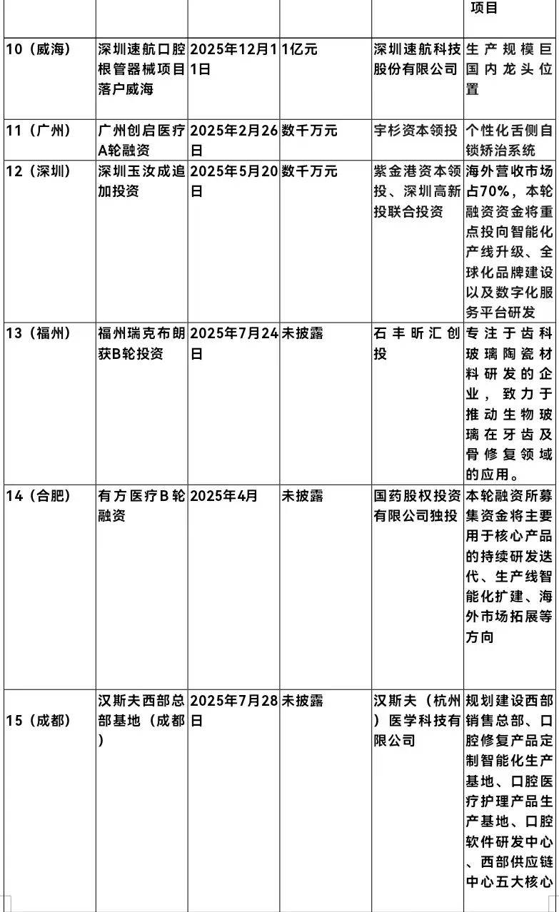 | 2025年口腔医疗行业十大投融资案例出炉,单笔最高10亿元人民币