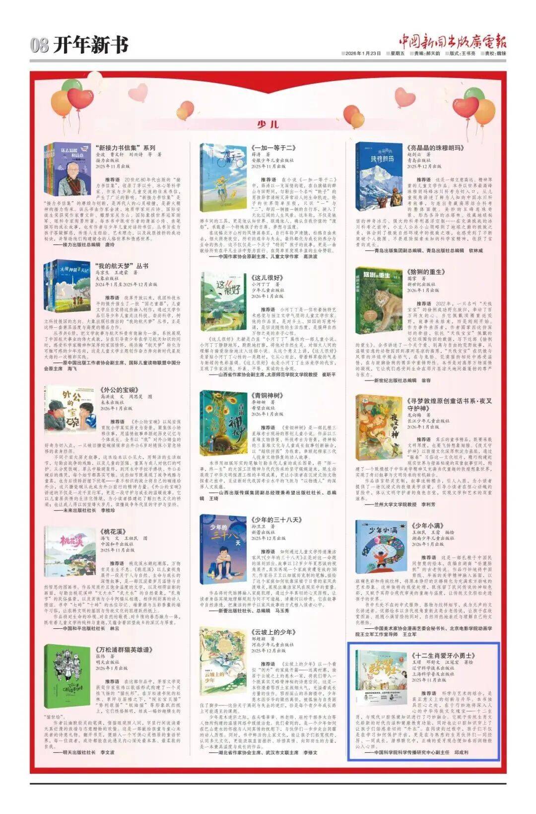 | 《十二生肖爱牙小勇士》荣登《中国新闻出版广电报》2026开年书单(少儿类)