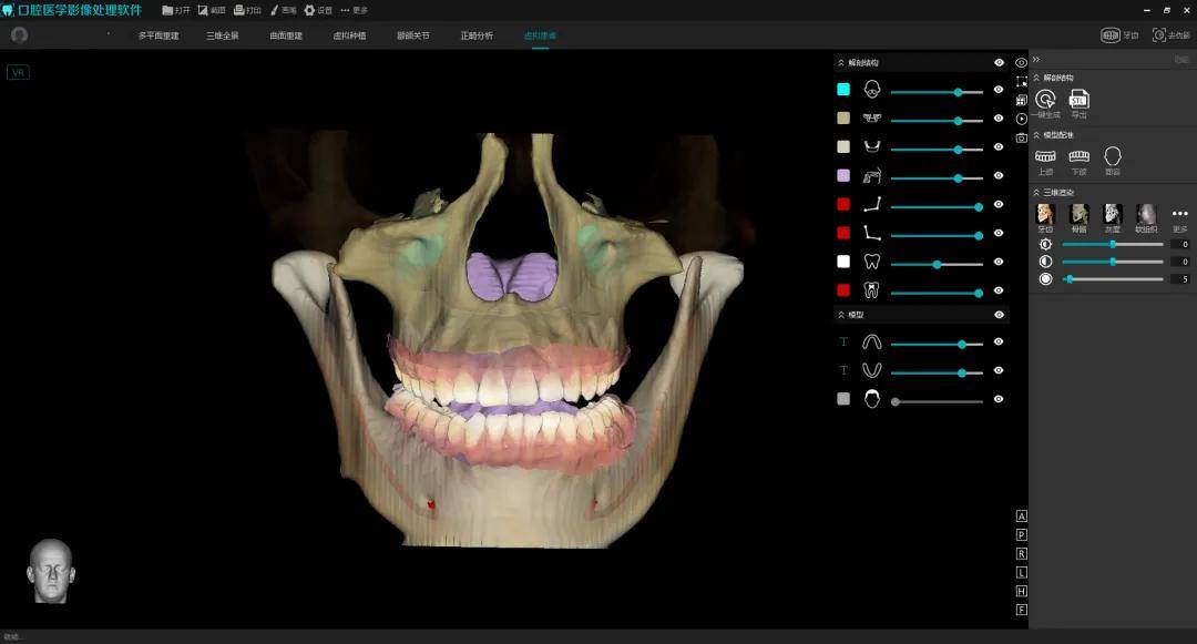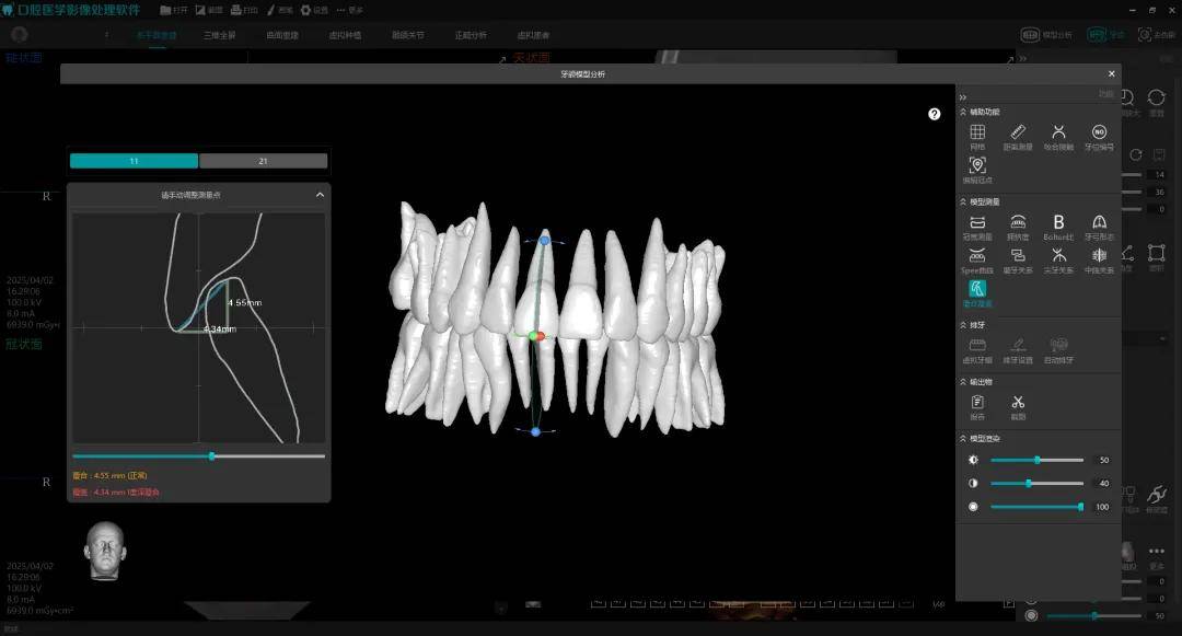 (3)智能正畸功能实现突破,依托自身CT数据即可独立完成正畸模型分析与模拟排牙,无需额外设备补充数据,新增全牙列视野分析与模拟排牙动画,搭配优化后的分析报告,大幅提升诊疗精准度与效率。