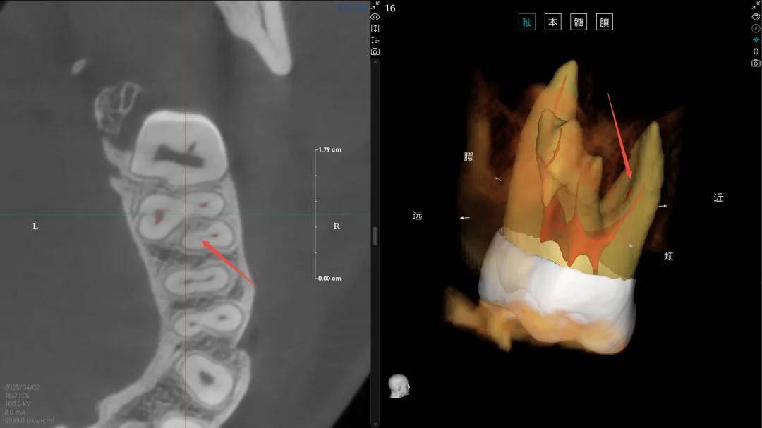 (4)“髓易诊”功能精准度与使用体验再提升,根管弯曲度支持手动/智能测量;髓腔提取算法迭代,识别准确率大幅飙升;新增牙体360°环绕观察,全方位掌控解剖细节,让根管诊疗更精准、更高效。